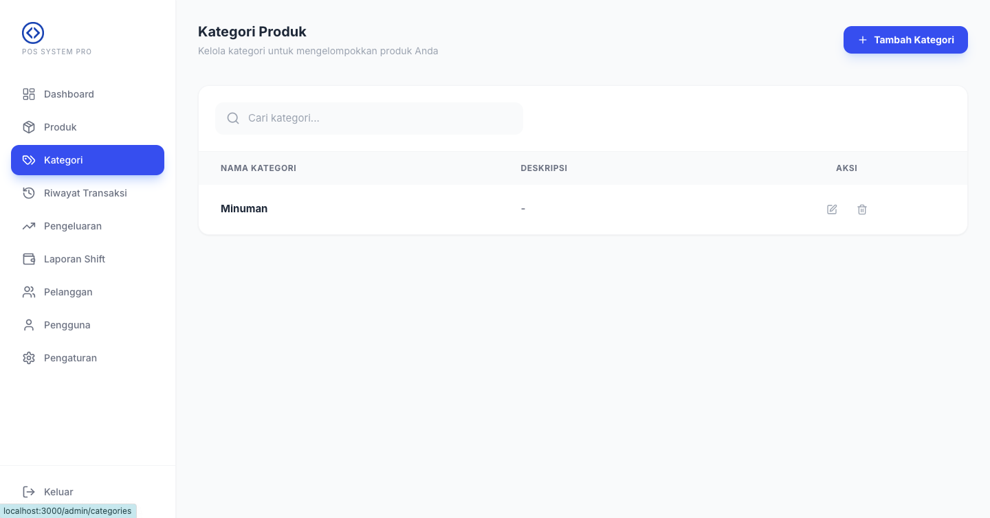 - Pengaturan Sistem: Sesuaikan nama toko, persentase pajak (PPN), dan logo aplikasi dalam satu halaman pengaturan.